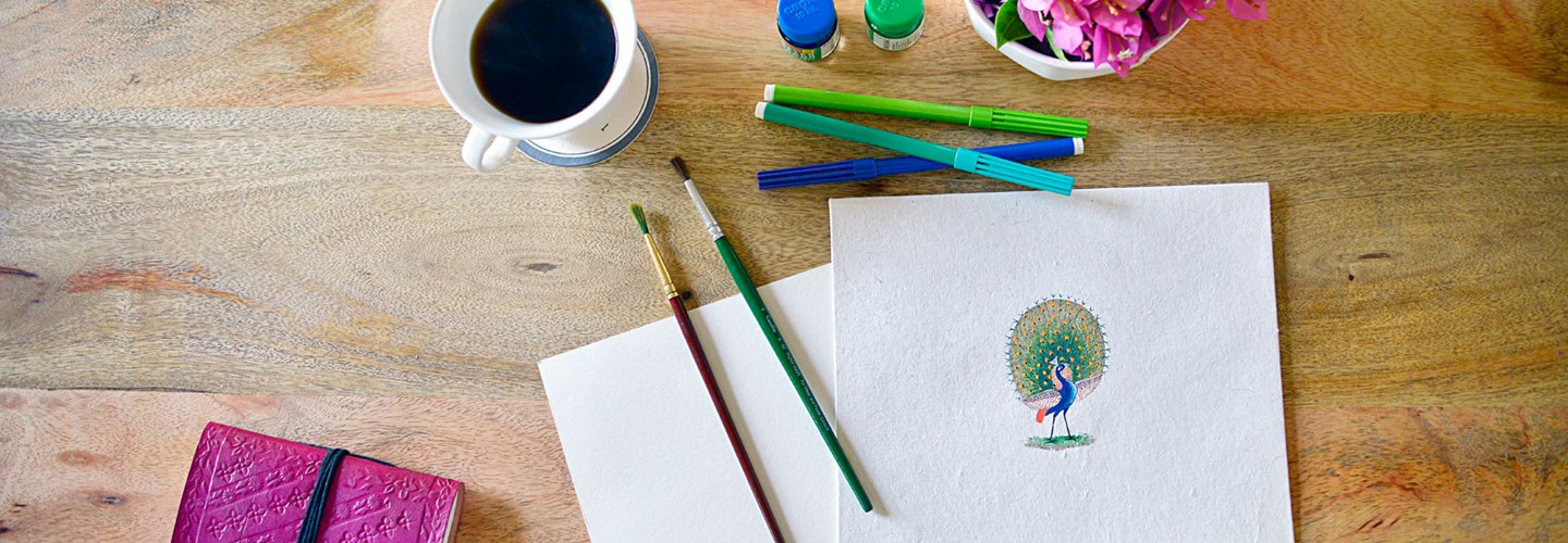 Miniature paintings are beautiful handmade paintings, which are quite colorful but small in size. The paintings were painted with extremely fine brushed made by insertind just a few strands of squirrels tail hair in to brd feathers.The colours were extracted from certain minerals, plant sources, conch shells, and were even derived by processing precious stones. Gold and silver are also used.Then the hand written note was sealed with a real golden stamp depicting the royalty and prosperity.