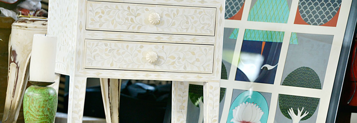 This meticulous skill has passed over through generations. The pieces of camel bone were hand-carved into delicate shapes then those pieces were fixed onto a wooden furniture frame in intricate patterns.Lastly the base was filled with the colored resin.